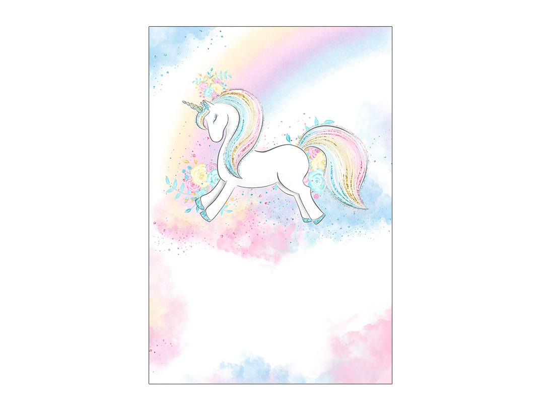 Painel De Festa Vertical 1,50 x 2,20 - Unicórnio Azul e Rosa Efeito Glitter 019