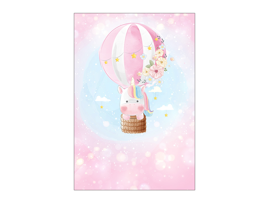 Painel De Festa Vertical 1,50 x 2,20 - Unicórnio Cute Rosa 016