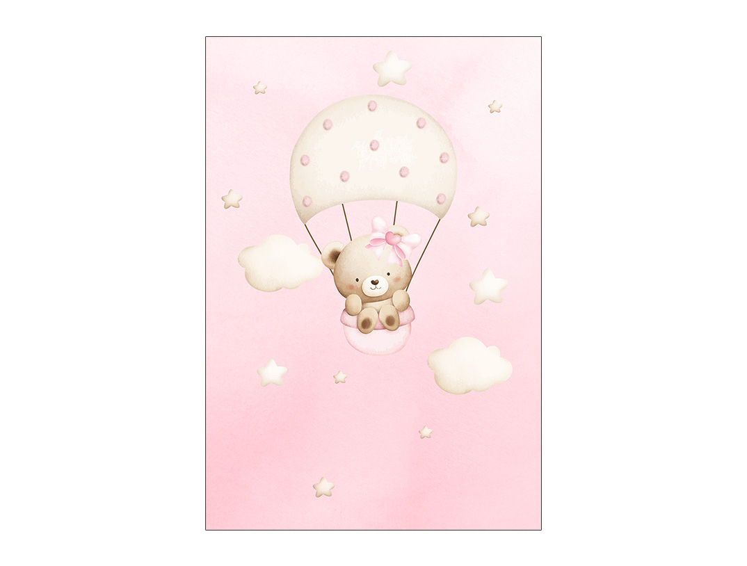 Painel De Festa Vertical 1,50 x 2,20 - Ursinha Baloeira Rosa 090