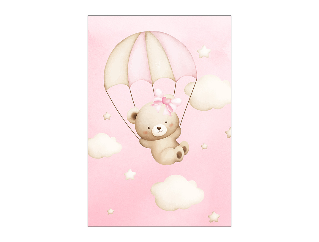 Painel De Festa Vertical 1,50 x 2,20 - Ursinha Baloeira Rosa Paraquedas 092