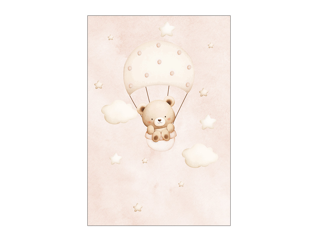 Painel De Festa Vertical 1,50 x 2,20 - Ursinho Bege Paraquedas 097