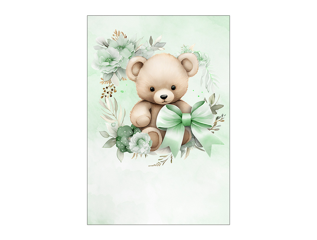 Painel De Festa Vertical 1,50 x 2,20 - Ursinho Verde com Flores e Laço 100