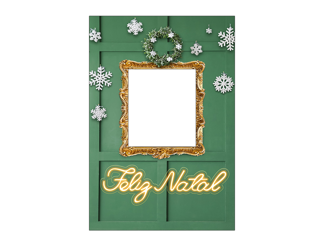 Painel De Festa Vertical Interativo 1,50x2,20 - Feliz Natal Boiserie Verde 055