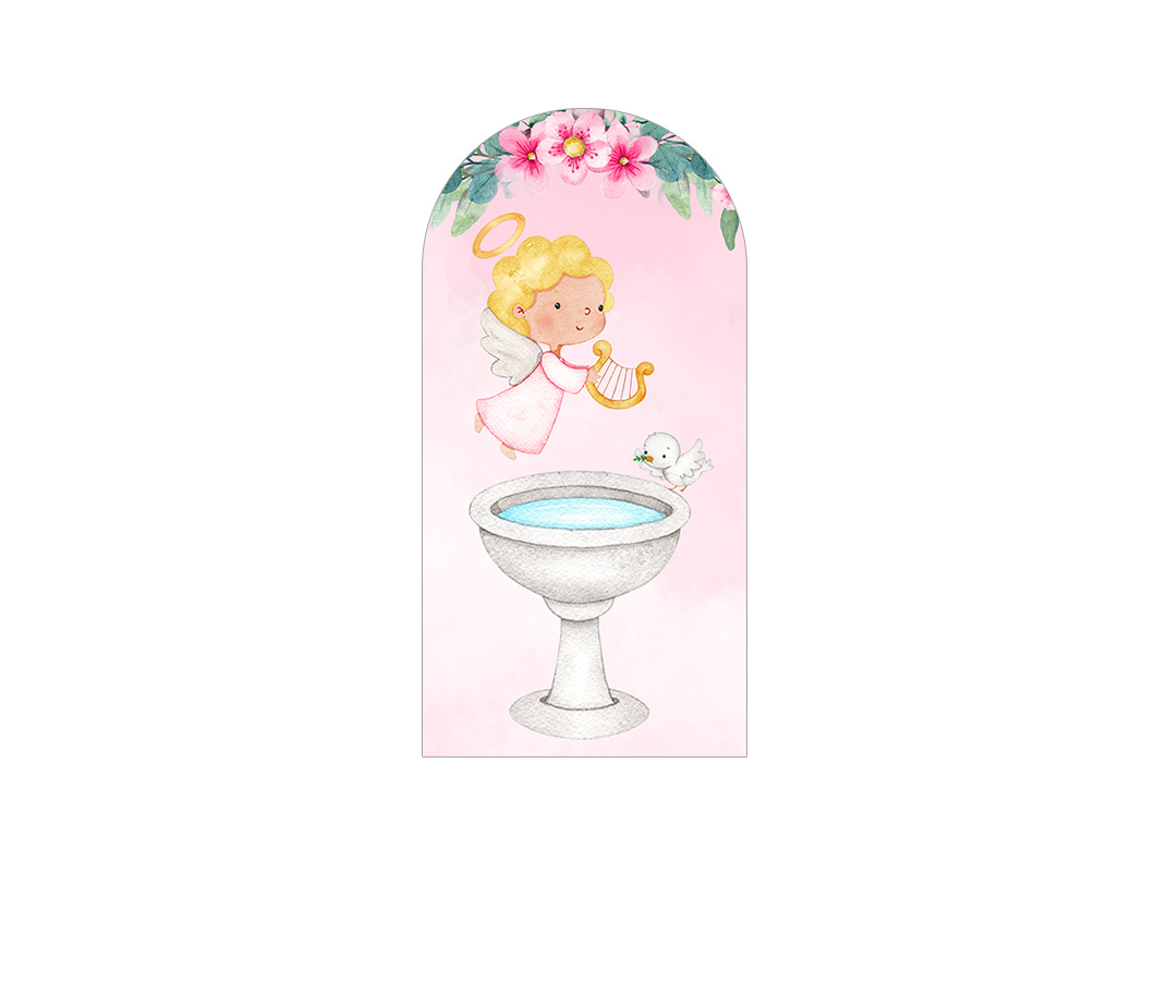 Painel Romano Veste Fácil 1,00x2,00 - Batizado Anja Cute Rosa 034