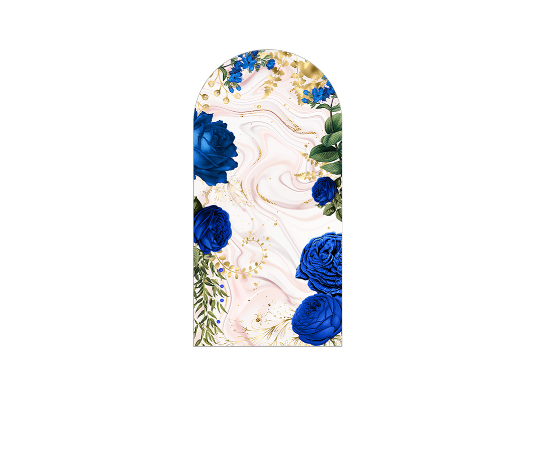 Painel Romano Veste Fácil 1,00x2,00 - Flores Azuis Efeito Mármore Rose e Dourado 054