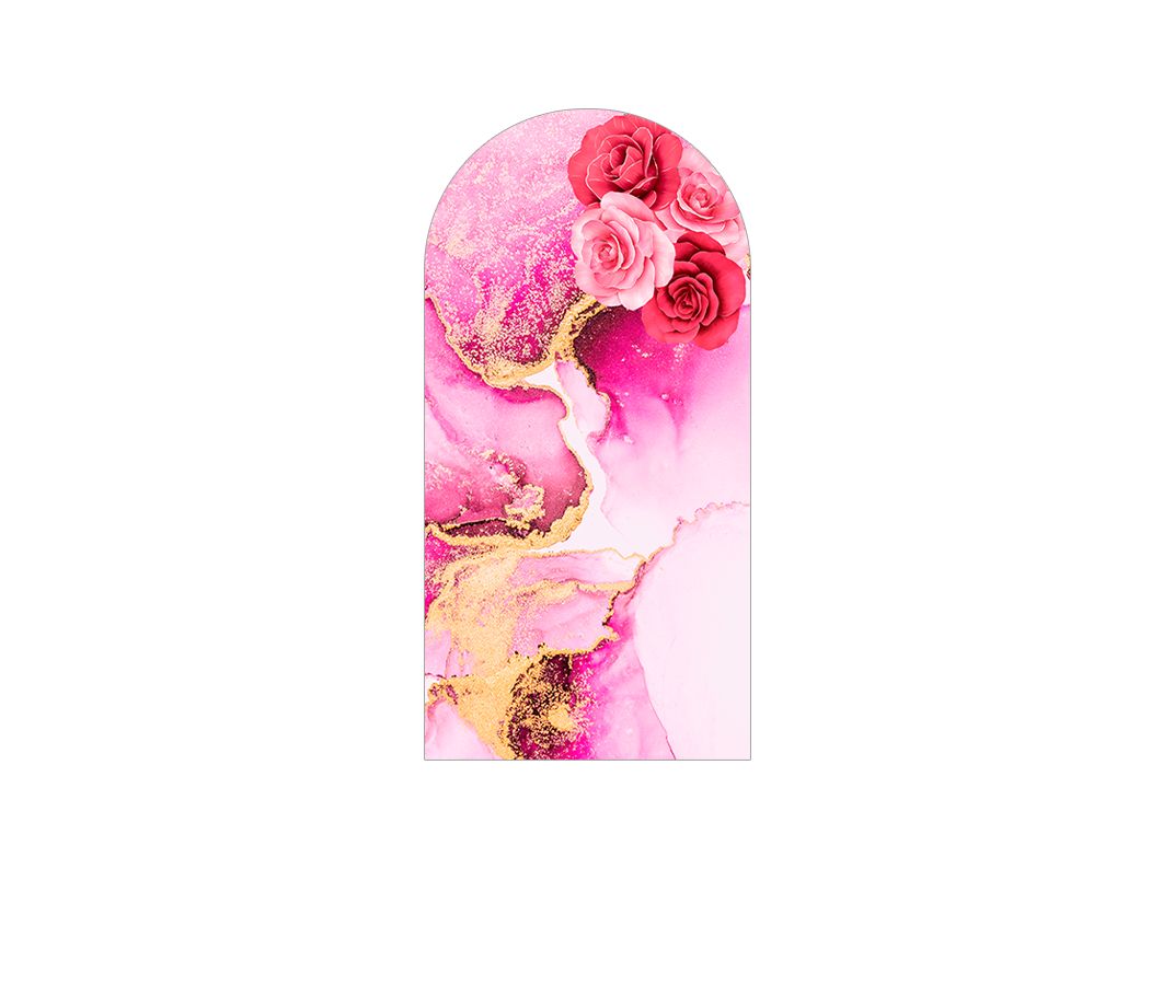 Painel Romano Veste Fácil 1,00x2,00 - Flores Efeito Mármore Rosa e Dourado 028