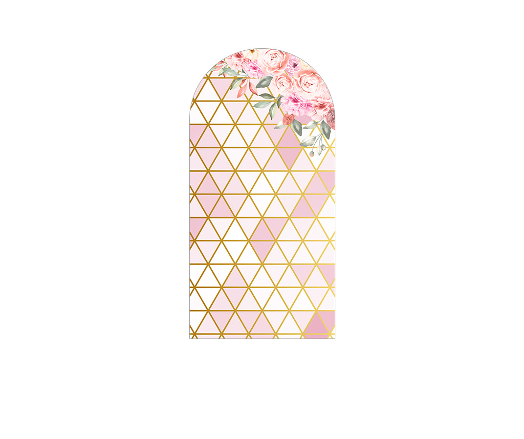 Painel Romano Veste Fácil 1,00x2,00 - Geométrico Floral Rosa e Dourado 045