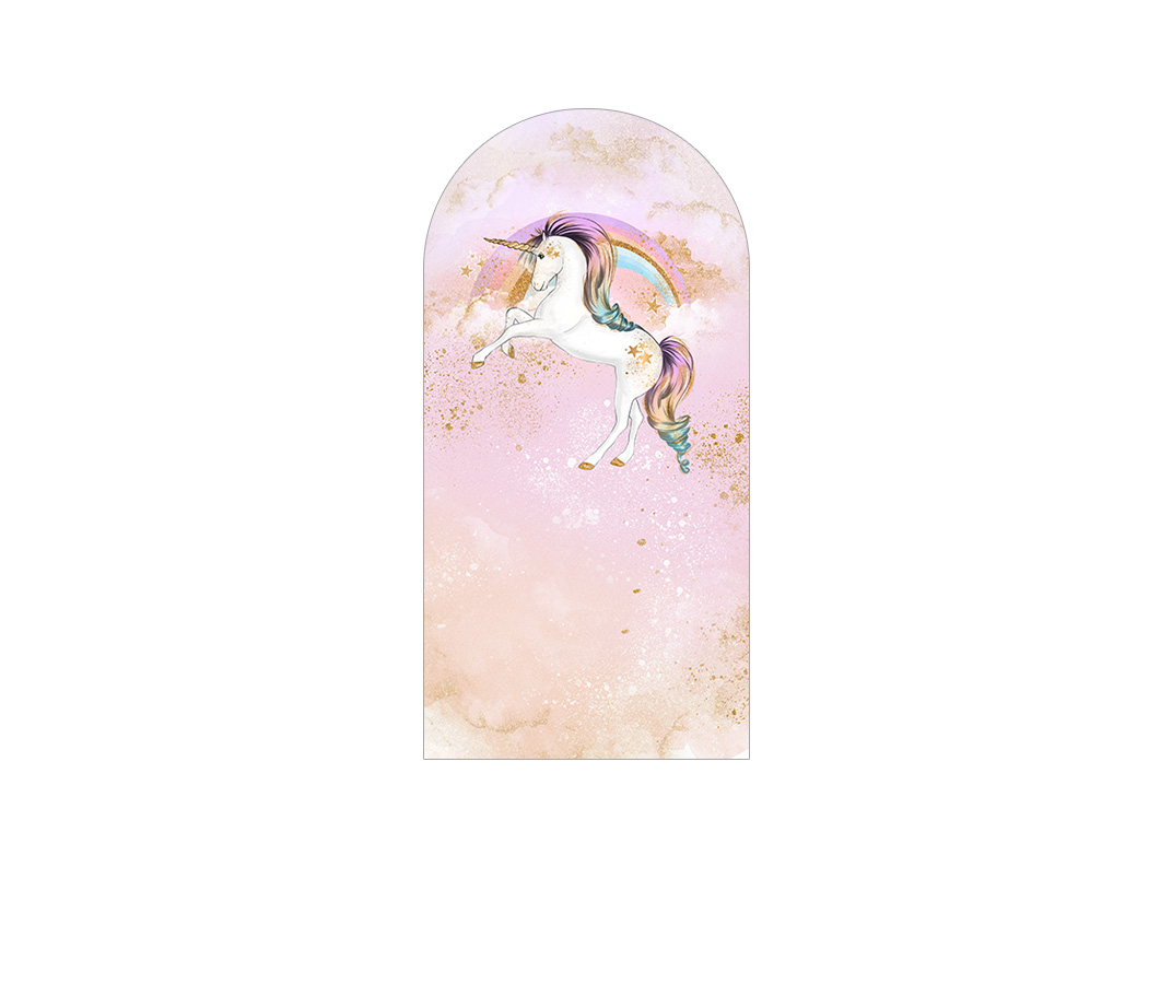 Painel Romano Veste Fácil 1,00x2,00 - Unicórnio Arco-íris Efeito Glitter Dourado 005