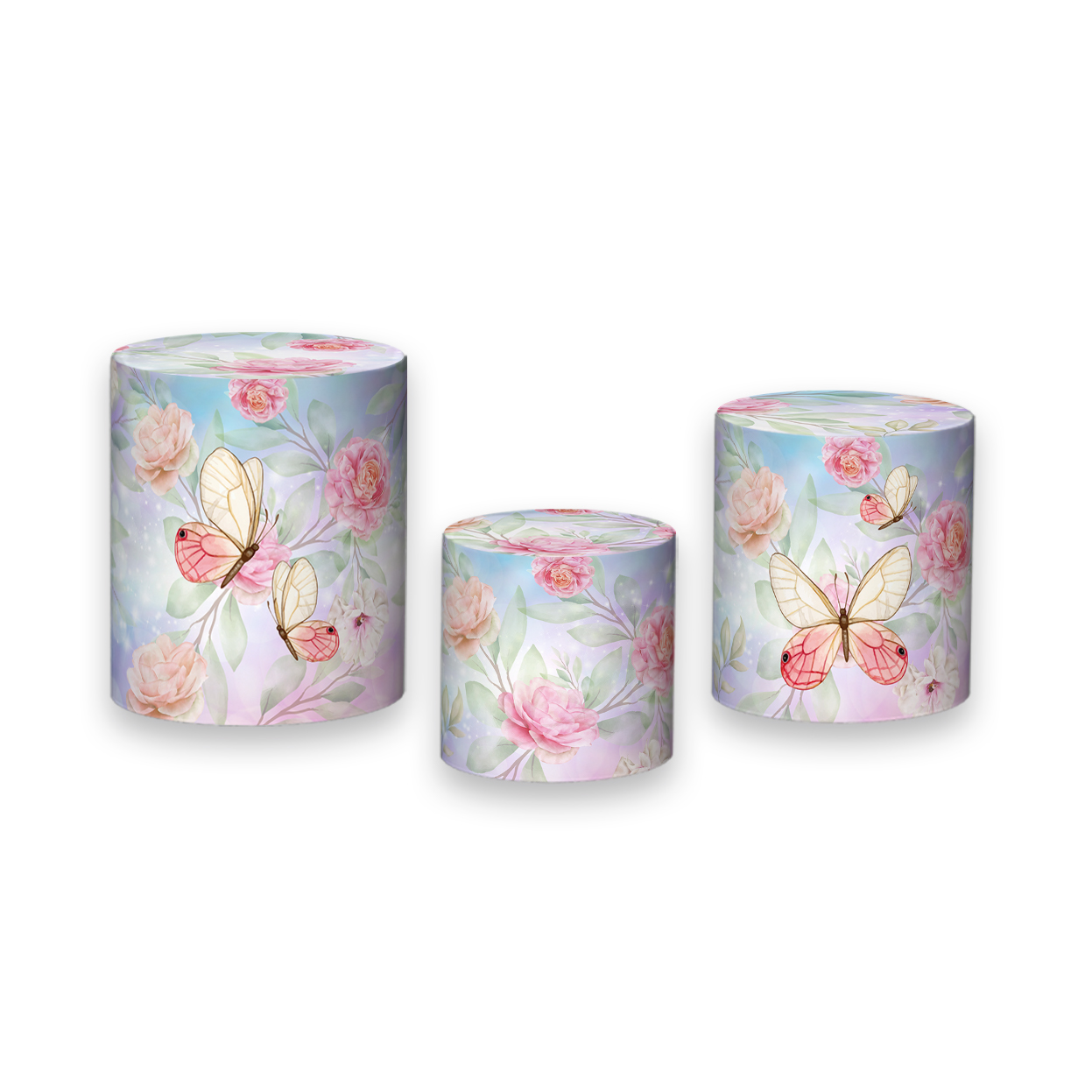 Trio De Capas De Cilindro - Borboletas Rosa e Bege 002