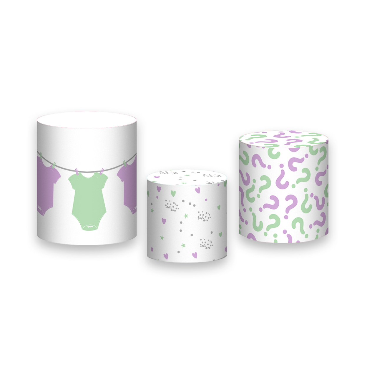 Trio De Capas De Cilindro - Chá Revelação Simples Verde e Lilás 029