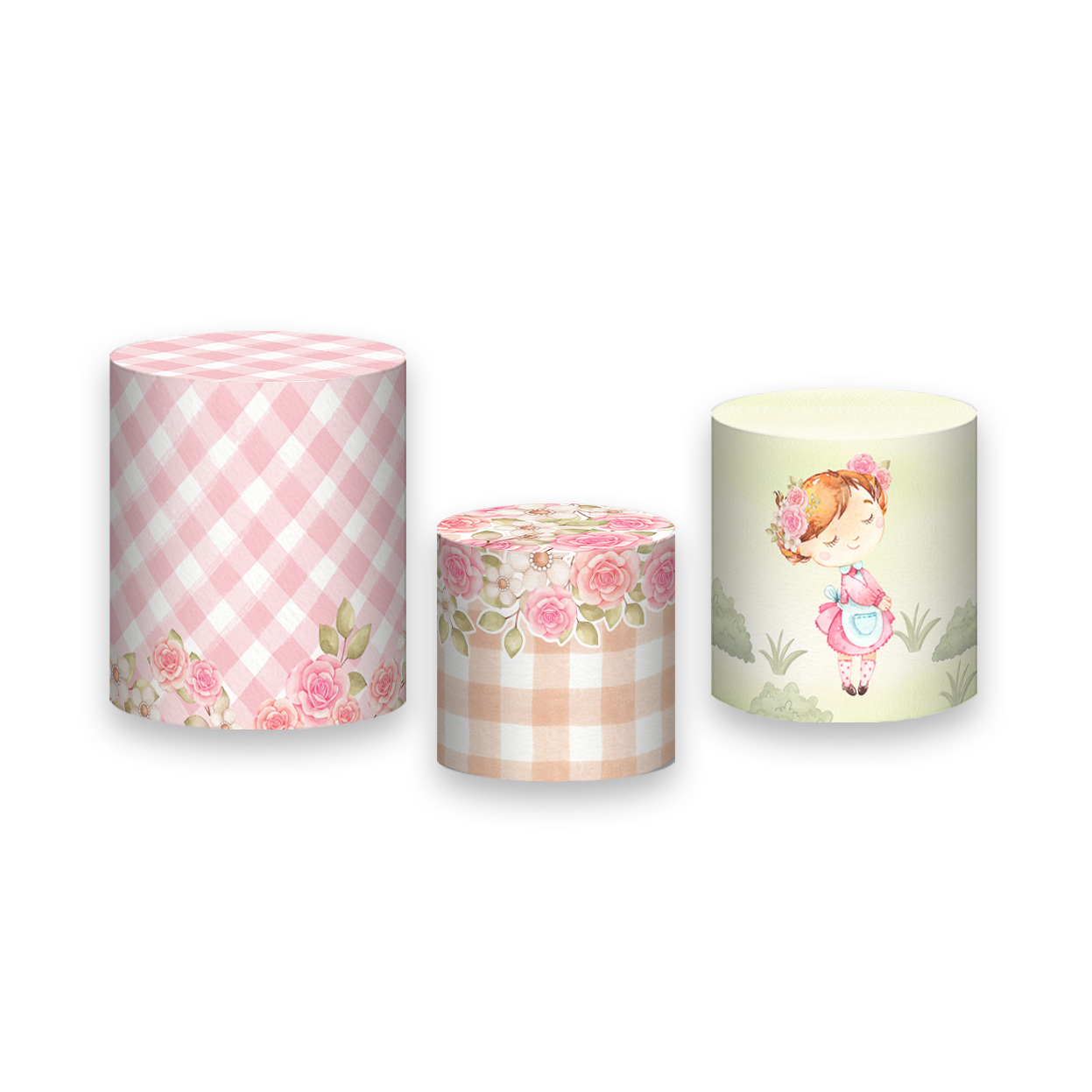Trio De Capas De Cilindro - Menina Cute Fazendinha Xadrez 033