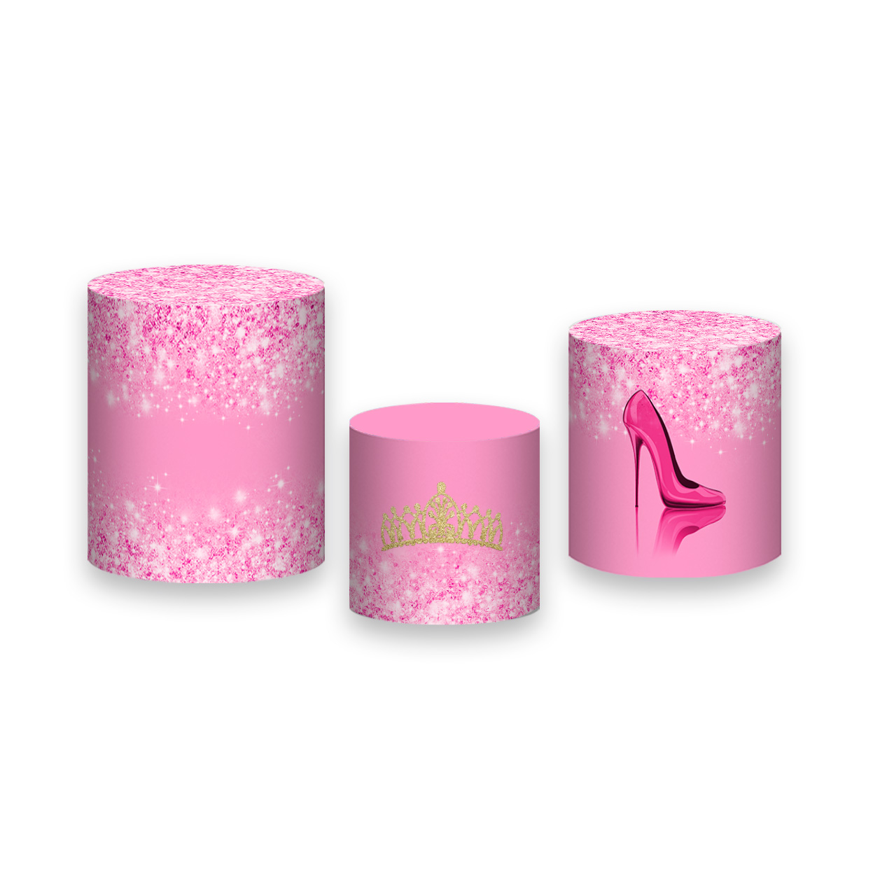 Trio De Capas De Cilindro - Princesa 15 Anos Pink com Efeito Glitter 027