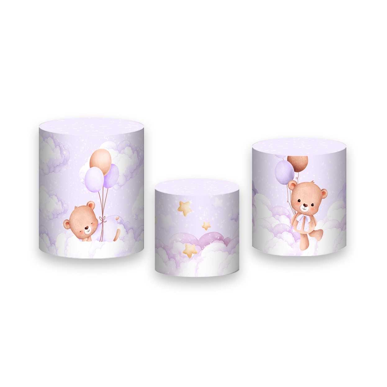 Trio De Capas De Cilindro - Ursinho Céu Lilás 081